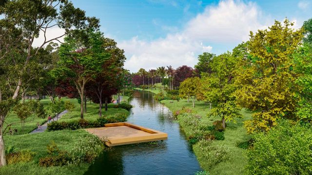 Terrenos a partir de 360 m² com infraestrutura completa incluindo amplas áreas verdes e espaços de convivência e drenagem sustentável.